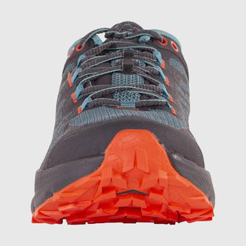Karacal está diseñado para un entrenamiento prolongado en distancias medias y largas y es perfecto para la recuperación posterior a la carrera gracias a su comodidad en un ajuste excepcional y la alta transpirabilidad. Extremadamente ligero y flexible gracias a la reducción del peso de todos los materiales utilizados y la entre suela de EVA de doble densidad ligera y duradera. La zona de la puntera preformada térmicamente contribuye a la ligereza y proporciona una excelente protección contra los impactos a rocas y raíces. El Impact Brake System está diseñado para largas sesiones de entrenamiento.